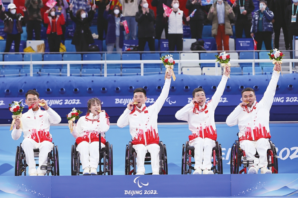 在不久前结束的北京冬残奥会上,中国轮椅冰壶队蝉联冠军,中国代表团也以18枚金牌、61枚奖牌在金牌榜、奖牌榜位居“双第一”。但在18枚金牌中,唯有这一枚被赋予了“卫冕”的意义。