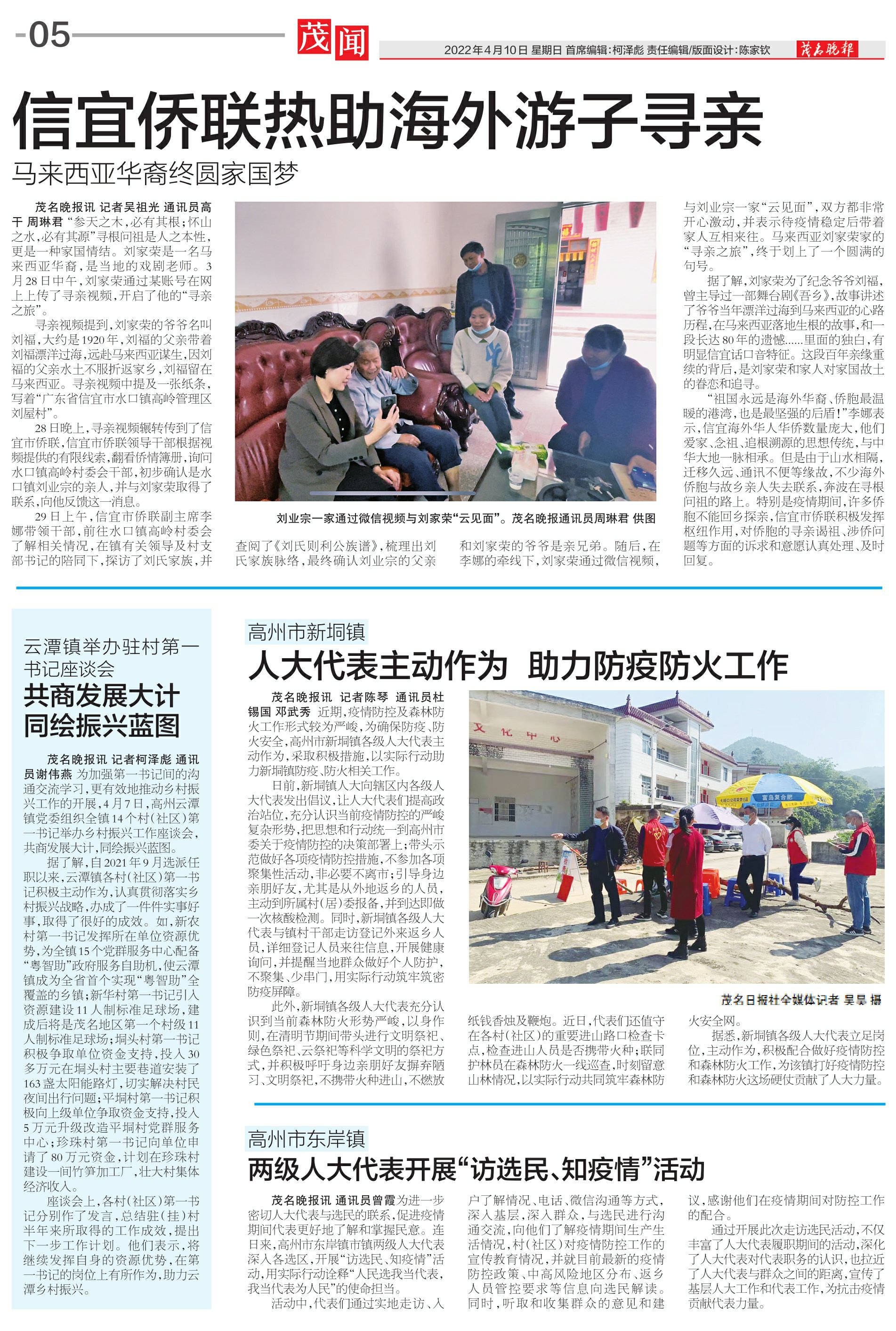 高州市新垌镇人大代表主动作为 助力防疫防火工作
