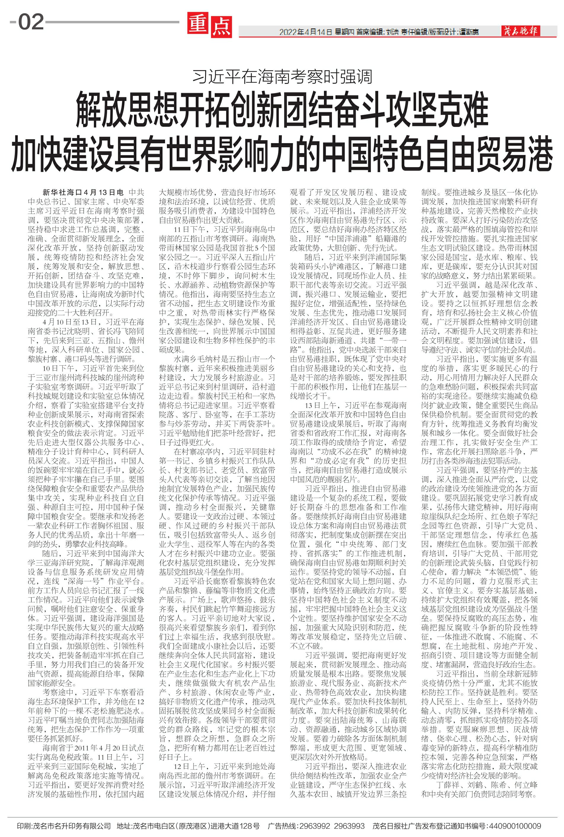 解放思想开拓创新团结奋斗攻坚克难 加快建设具有世界影响力的中国特色自由贸易港