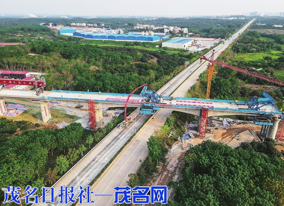 昨日,广湛高铁全线首座连续梁顺利合龙。茂名日报社全媒体记者岑稳摄