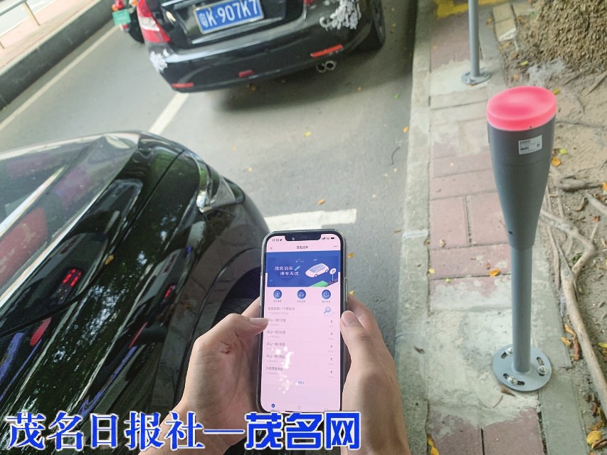市区建成的道路智慧泊位低位视频桩。茂名晚报通讯员肖敬曦摄