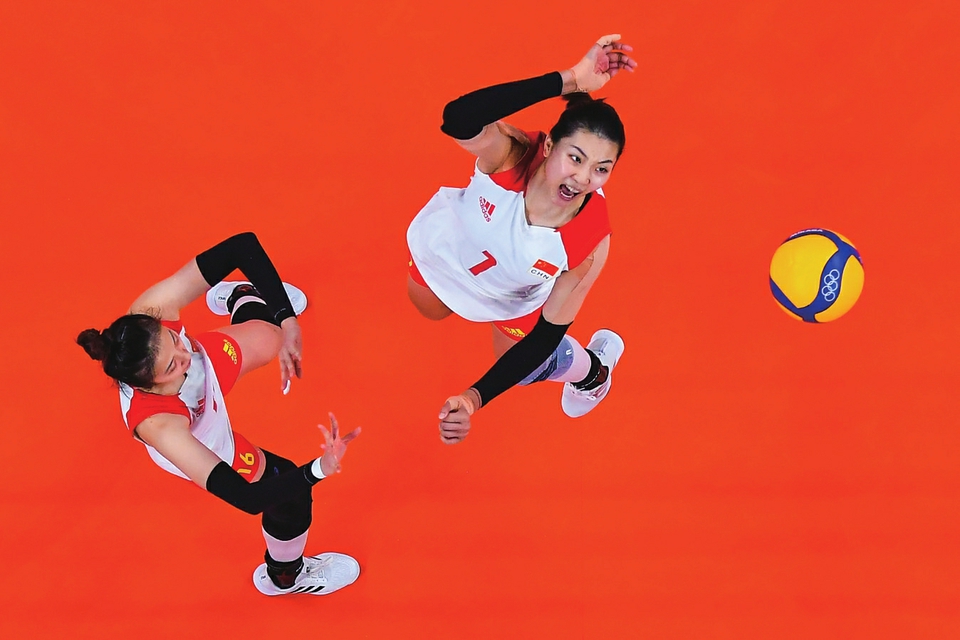 2021年7月29日,中国队球员袁心玥(右)、丁霞在东京奥运会比赛中。新华社记者 徐子鉴 摄