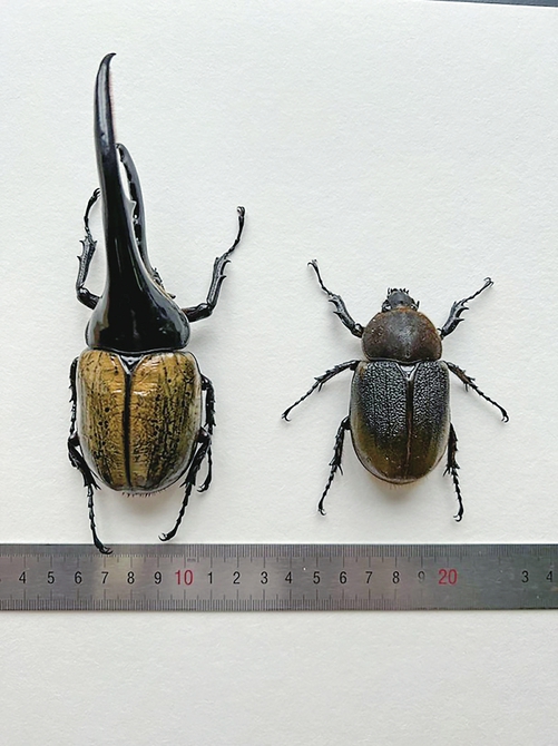图为截获的长戟犀金龟雌虫(右)、雄虫(左)。(成都海关供图)
