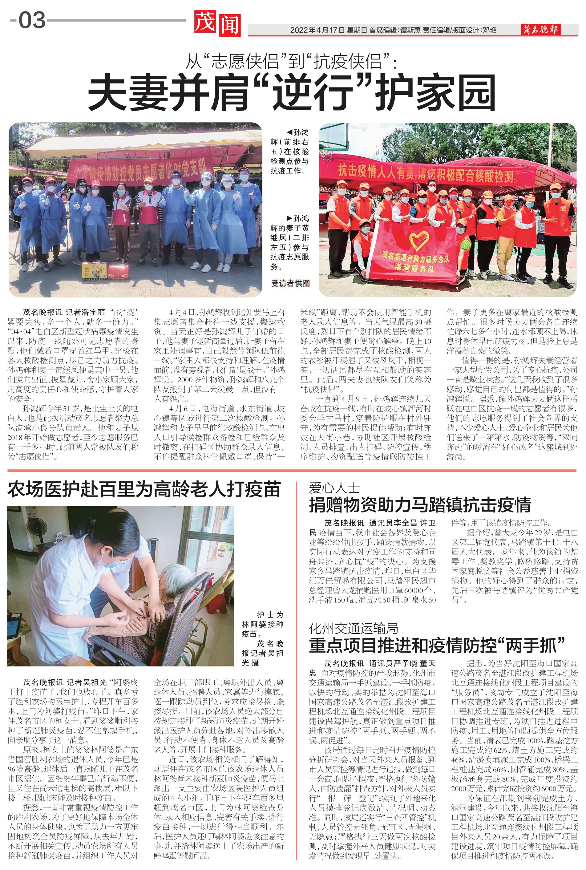 茂名晚报讯 通讯员严予晓董天忠 面对疫情防控的严峻形势,化州市交通运输局一手抓建设,一手抓防疫,以快的行动、实的举措为沈阳至海口国家高速公路茂名至湛江段改扩建工程机场北互通连接线化州段工程项目建设保驾护航,真正做到重点项目推进和疫情防控“两手抓、两手硬、两不误、两促进”。