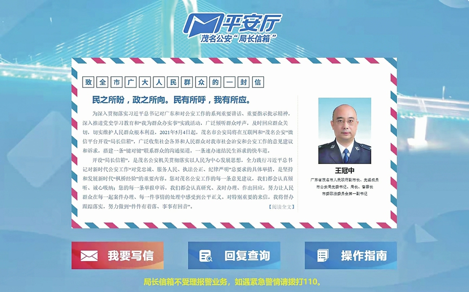 茂名公安“局长信箱”界面。