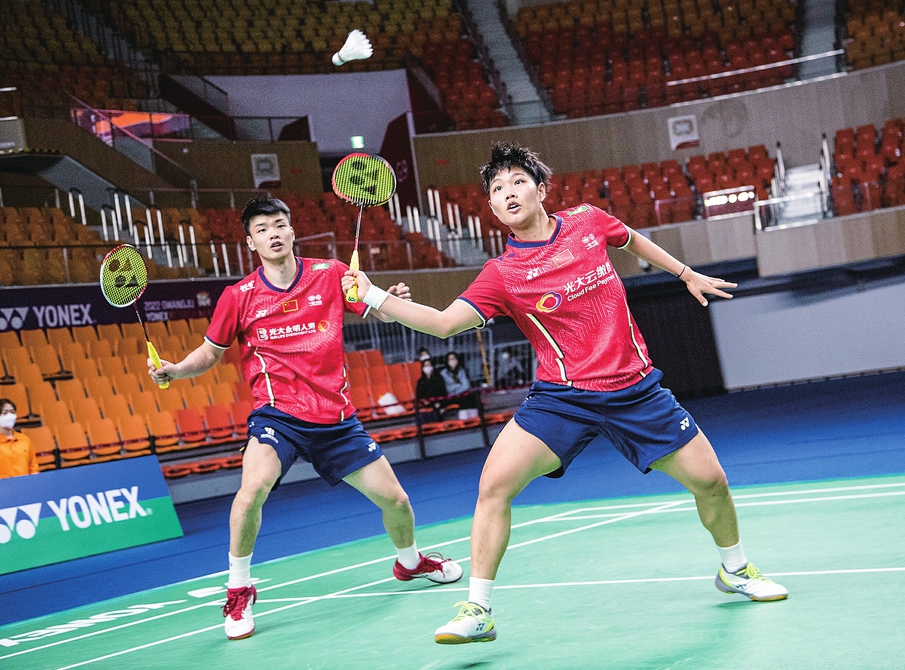 ▲4月16日,王懿律/黄东萍(右)在比赛中。