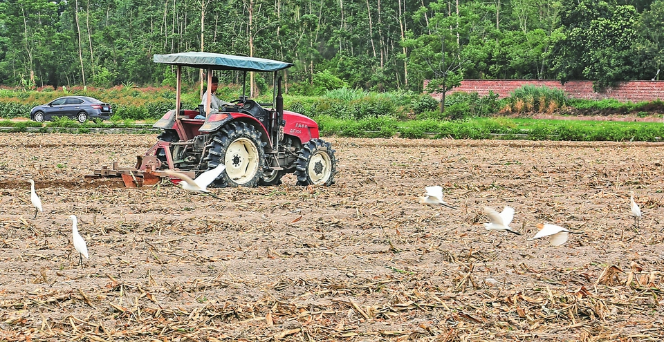 日前,在茂南区金塘镇姚村村,一群白鹭围绕着正在田间作业的耕地机飞舞,不时啄食地里的小虫。当地农民与白鹭和谐相处,构成一幅春日农耕图。
