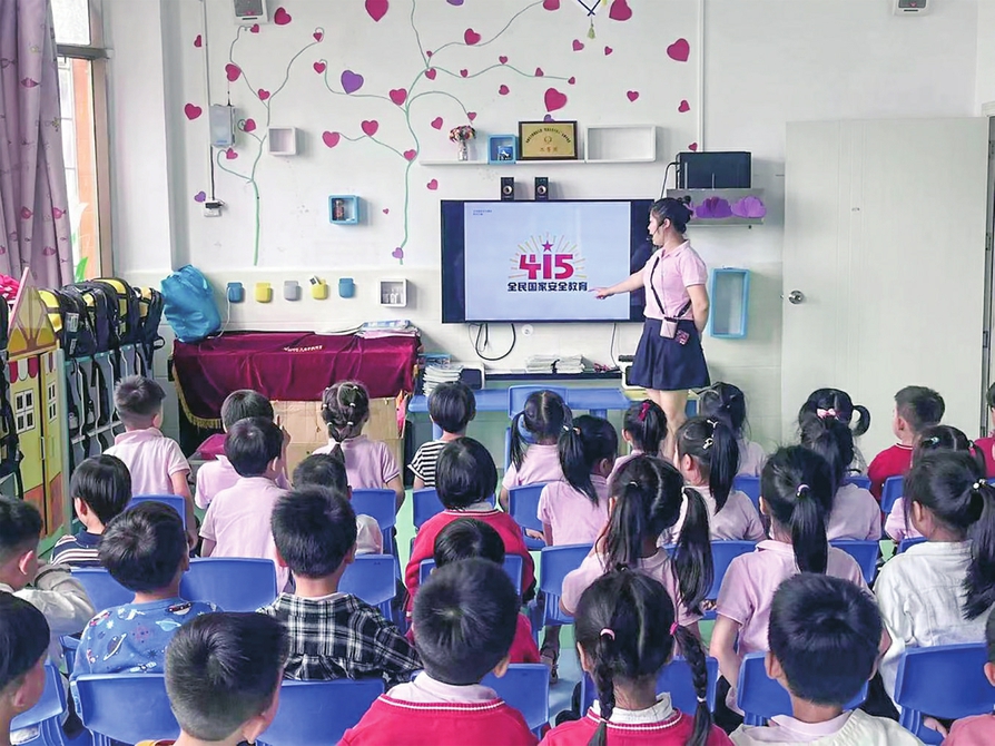 该区各中小学、幼儿园在全民国家安全教育日期间,以宣传阵地为依托,以宣传版面为载体,广泛组织开展宣传活动,制作全民国家安全教育日宣传标语横幅,悬挂于公共场所进行宣传;开展亮灯活动,利用LED电子屏滚动播放国家安全相关宣传标语;制作国家安全宣传海报,粘贴在校园显眼处;制作一板以“全民国家安全教育”为主题的宣传专栏;开展一次以“全民国家安全教育”为主题的黑板报或手抄报比赛。与此同时,充分发挥新媒体的作用,加大国家安全宣传教育在公众号推送力度,广泛深入开展国家安全宣传教育,营造全民共筑国家安全屏障浓厚氛围。