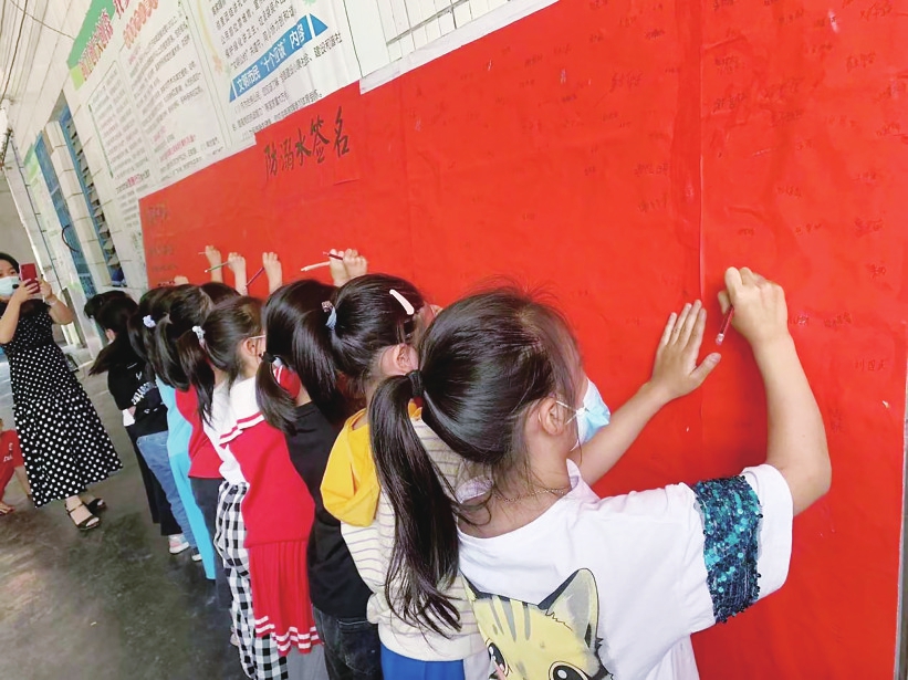 4月15日,茂名市电白区观珠镇中心小学开展“预防溺水 珍爱生命”宣誓活动暨安全教育大会,全体学生签下自己的姓名,承诺遵守做到防溺水“六不准”。
