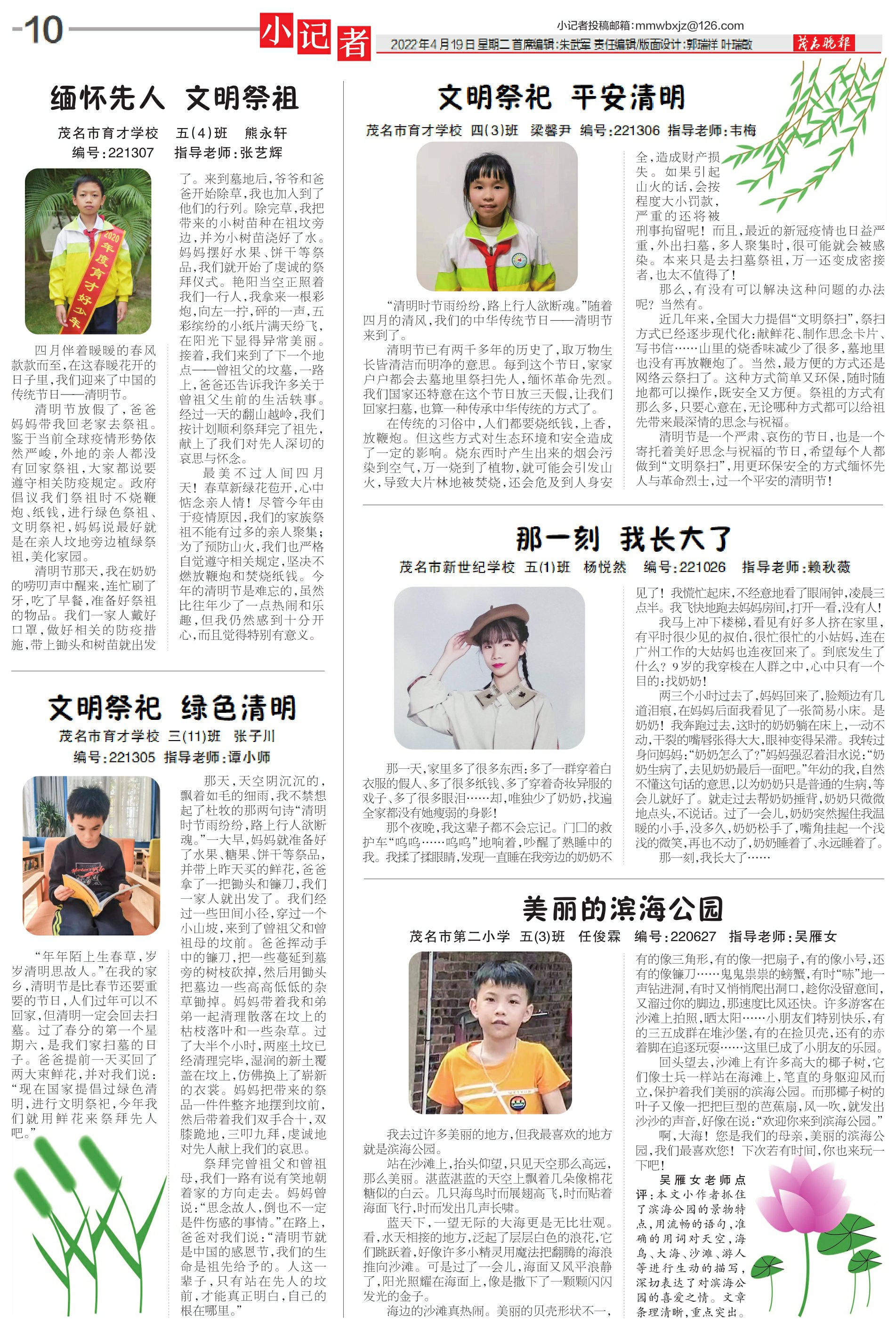 茂名市育才学校 五(4)班 熊永轩 编号:221307 指导老师:张艺辉