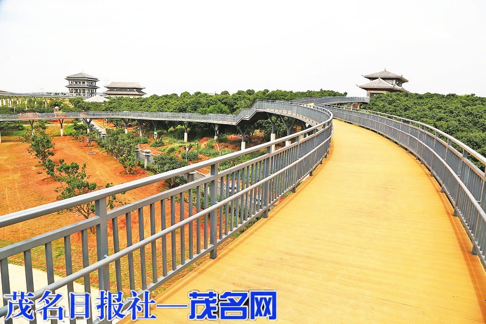 若从博览馆2楼穿过,可到达700多米的空中栈道。远远看去,弯曲的栈道、雄伟的仿唐建筑、绿色的荔枝林,宛如人间仙境,漫步其中,又仿佛梦回大唐。该栈道将博览馆和国家荔枝种质资源圃的产区荔枝展示区连在一起,实现“馆中有圃,圃中有馆”。刘付峤说,比如在博览馆看到一种荔枝,可到资源圃看看这个品种实际长什么样。同理,博览馆也可查阅到资源圃不同品种荔枝的资料。此外,该栈道还连接了3座观景亭,暂定为1、2、3号亭。2和3号亭之间有100米透明玻璃栈道,增添了几份乐趣。