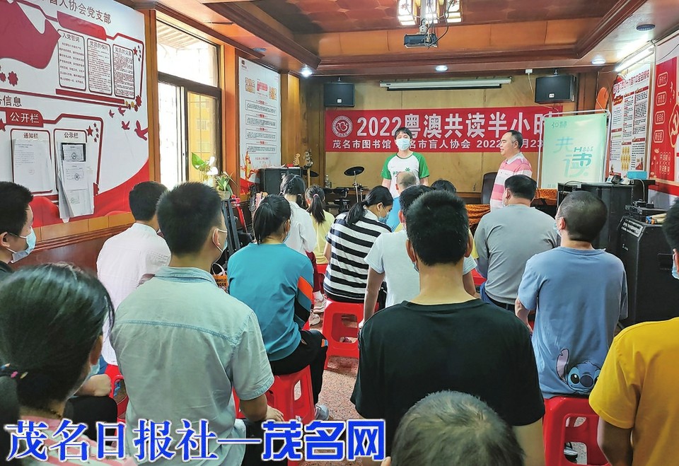 昨日,市图书馆、市盲人协会在市爱心残疾人职业培训学校组织开展以“品味书香·享阅读之乐”为主题的2022粤澳“共读半小时”阅读活动,30名盲人朋友在志愿者的带读下齐声诵读《少年中国说》,亲身体验品味书香的社会新风尚。