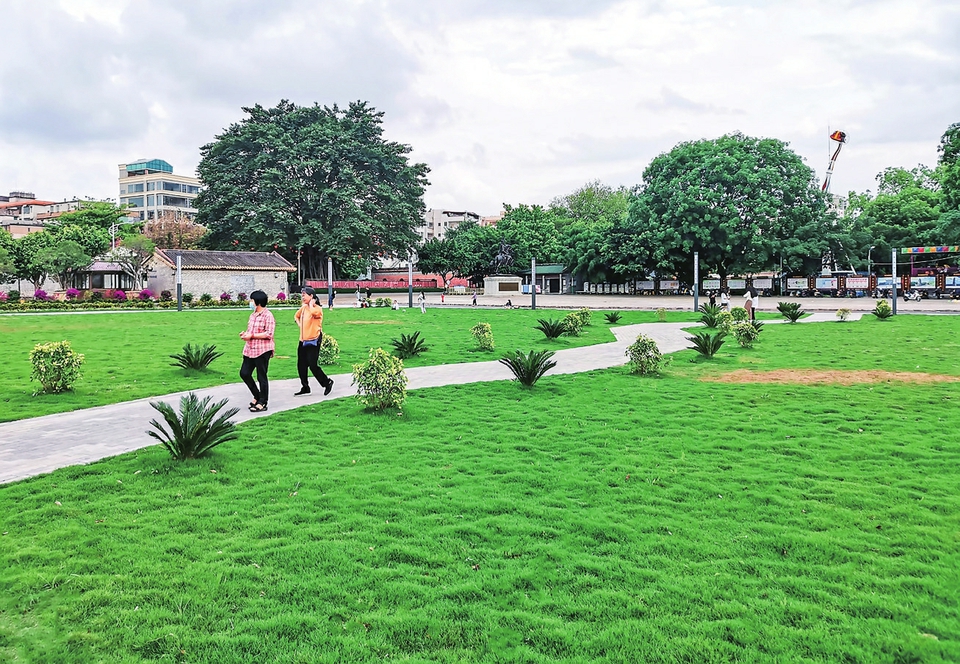 日前,高州城区冼太文化广场大草坪经过升级改造后对市民开放,为高州市中心再增添一片“绿肺”,既改善人居环境,也为群众提供了一个日常休闲运动的好去处。