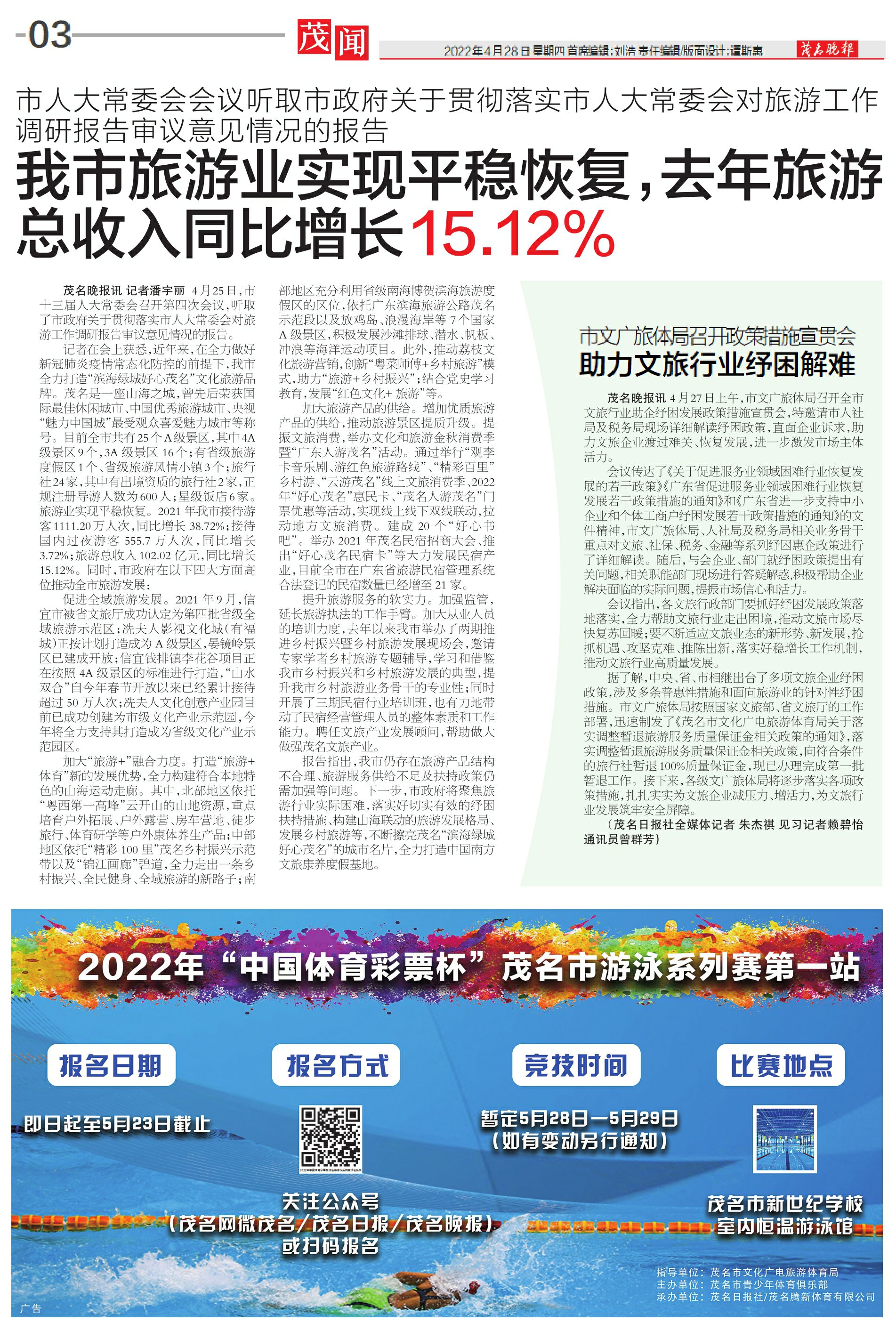 我市旅游业实现平稳恢复,去年旅游总收入同比增长15.12%