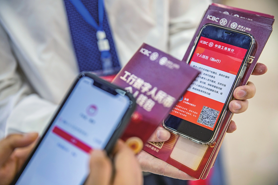 5月3日,工行重庆市分行江北建新北路支行工作人员在观音桥商圈茂业天地百货商场内推介数字人民币App。 自重庆成为数字人民币第三批试点城市之一以来,中国工商银行重庆市分行围绕数字货币、数字经济不断丰富消费者支付体验,便捷支付方式,助力“五一”小长假消费。新华社记者黄伟摄