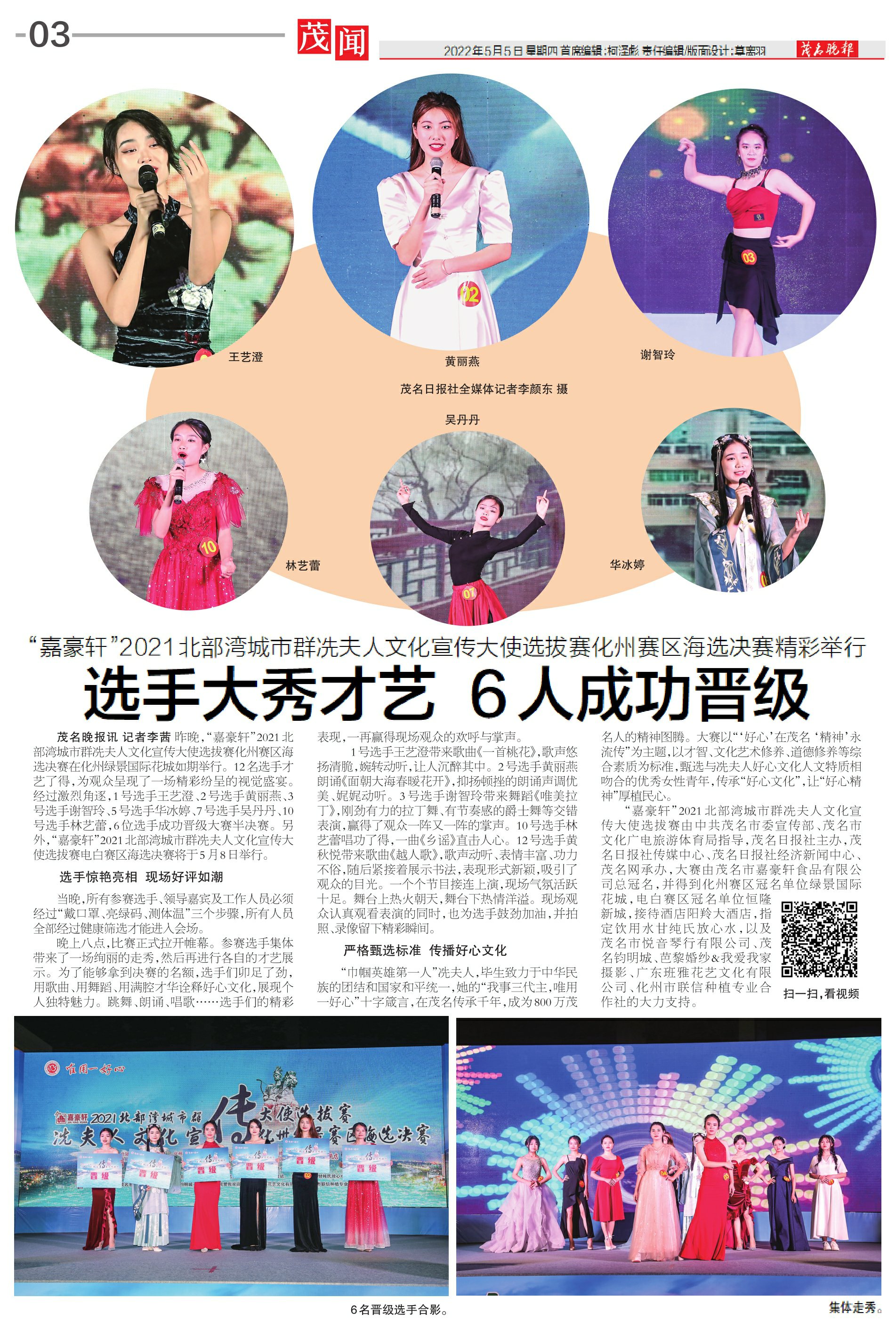选手大秀才艺 6人成功晋级