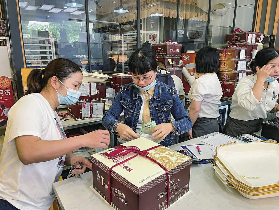 在市区人民中路的蛋糕店,不少市民订购蛋糕,为母亲庆祝节日,感恩母亲。 茂名日报社全媒体记者李颜东摄
