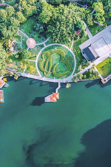 航拍茂名新湖公园。
