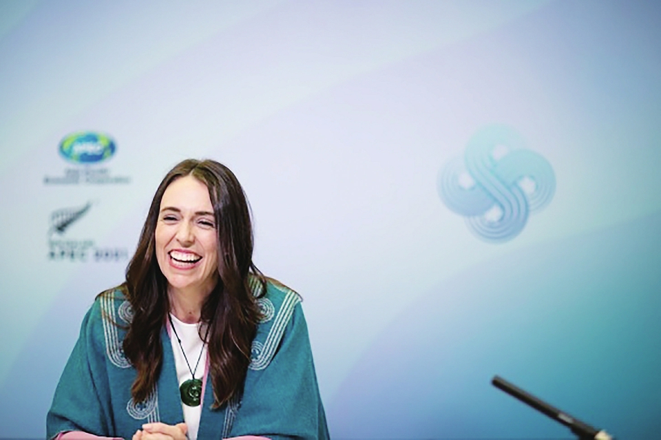 2021年11月13日,新西兰总理阿德恩在惠灵顿主持亚太经济合作组织第二十八次领导人非正式会议。(新华社发,组委会供图)