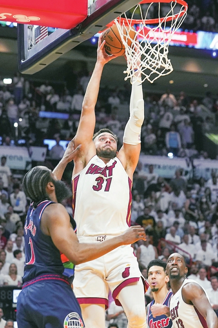 新华社华盛顿5月10日电2021-2022赛季美职篮季后赛10日继续举行,在东部半决赛中,迈阿密热火120:85击败费城76人,将总比分改写成3:2的同时,率先拿到晋级“赛点”。而在西部联盟的一场半决赛中,菲尼克斯太阳110:80击败达拉斯独行侠,赢得“天王山之战”。