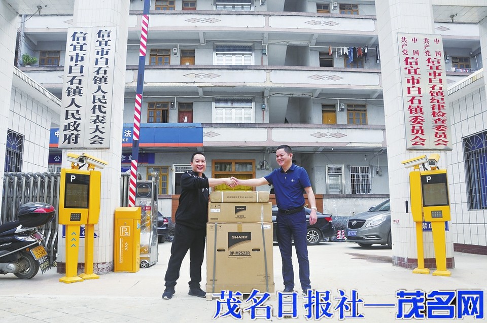 市新阶联向白石镇政府捐赠一批办公设备。 茂名晚报记者许铭和通讯员伍世浩摄