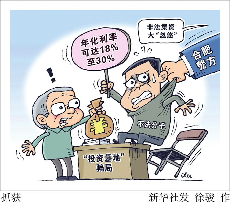 新华社合肥5月19日电(记者陈诺)鼓吹“投资墓地”稳定盈利,实则非法集资大“忽悠”。记者日前从安徽省合肥市公安局了解到,当地警方破获一起以“投资墓地”为幌子,骗取老年人“养老钱”的非法集资案,涉案金额650余万元,被骗老年人超过110人。