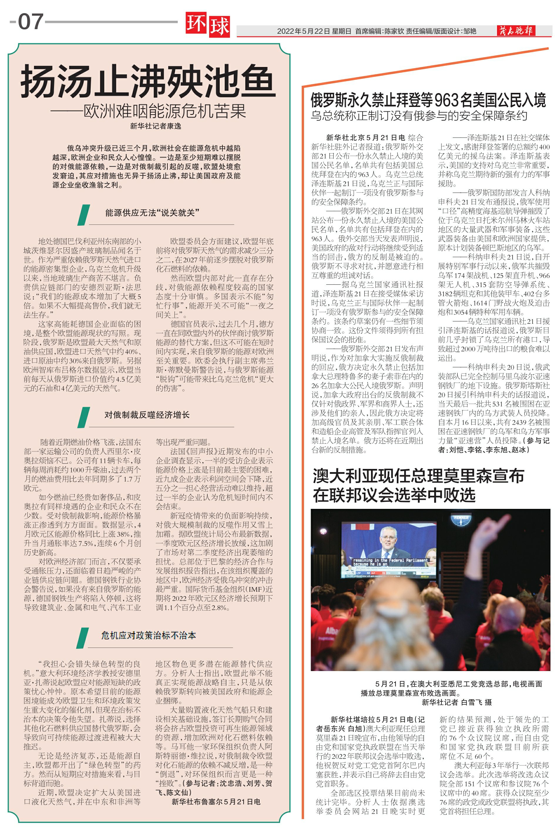 澳大利亚现任总理莫里森宣布在联邦议会选举中败选
