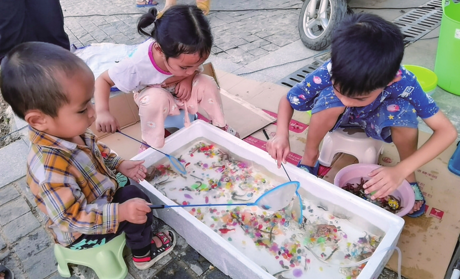 小朋友在捞小鱼。