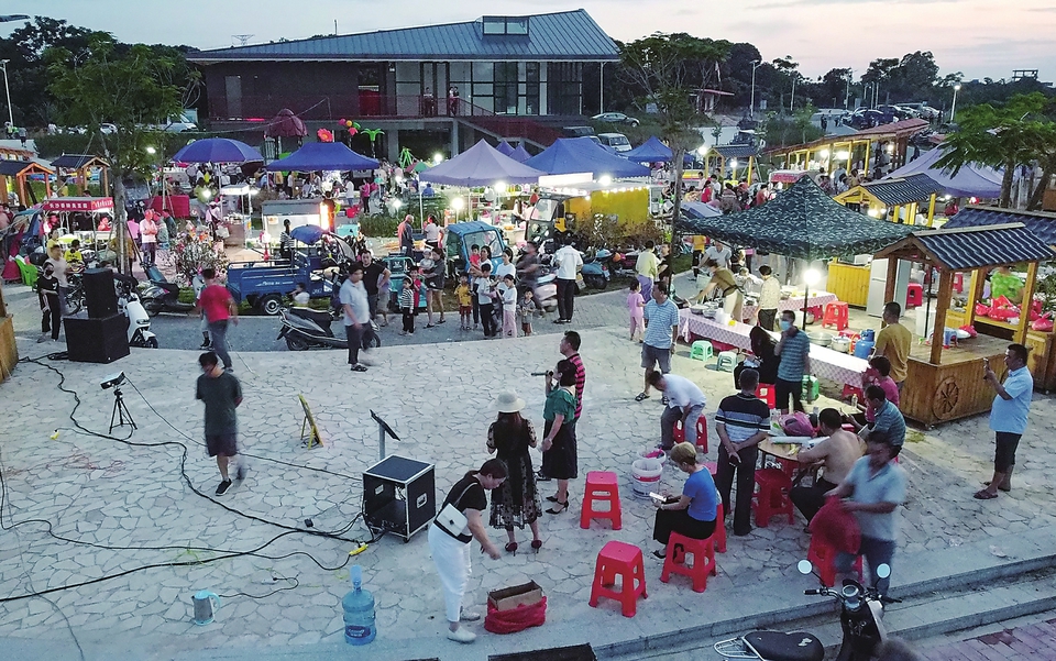 夜幕降临,那际乡村集市人气渐旺。
