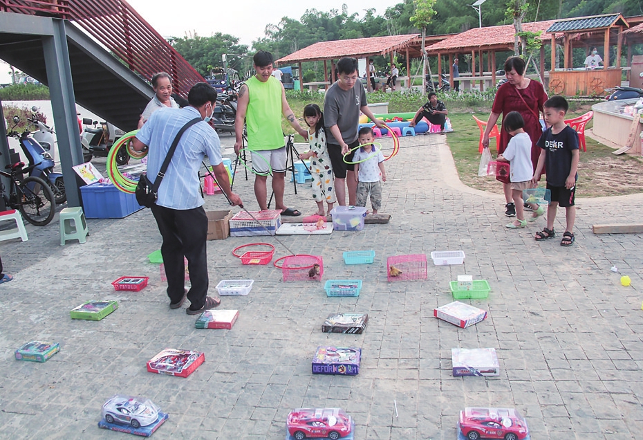 小朋友在玩套圈游戏。