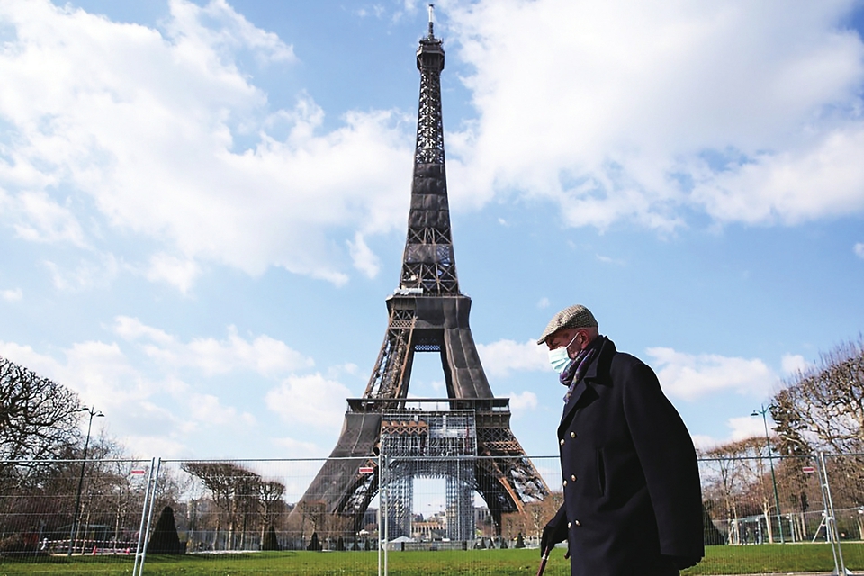 2021年3月19日,戴口罩的行人从法国巴黎战神广场走过。新华社记者高静摄