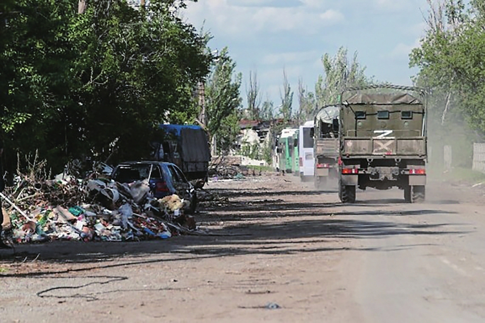 5月20日,载着乌克兰武装人员的巴士驶离马里乌波尔。新华社发(维克托摄)