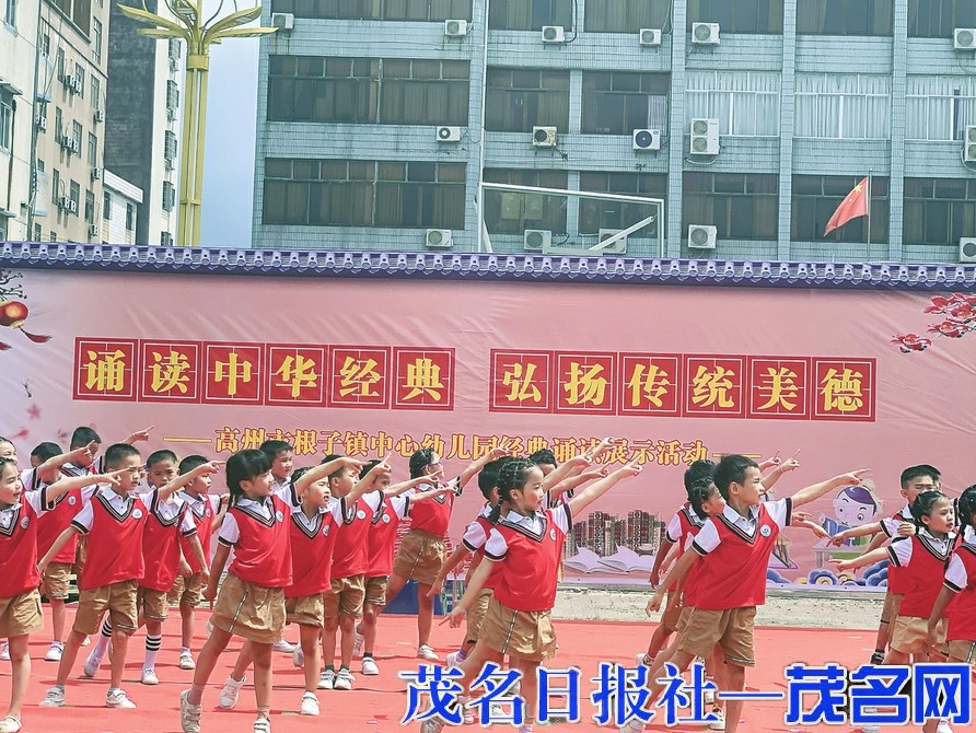 昨天,高州市根子镇中心幼儿园开展迎“六一”“诵读中华经典,弘扬传统美德”诵读经典展示活动。 通讯员陈华摄