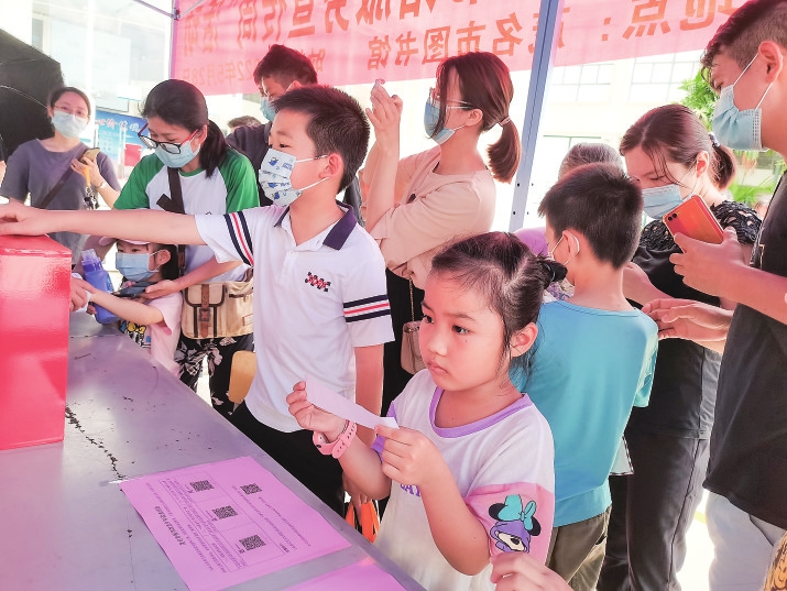 活动第一天,茂名市图书馆在“家门口”开展现场宣传活动,许多来馆看书的读者特别是亲子家庭纷纷驻足参与。只要扫码关注“茂名市图书馆”公众号,便可抽题,答对的读者可领取礼品一份。“你知道怎样才能看到图书馆的电子书吗?”“你知道法律书籍属于哪一类吗?”“图书一般可以续借多少次?”……通过解答这些与图书馆相关的知识问答,既提高了读者对图书馆的了解,也很好宣传和普及了全民阅读知识。