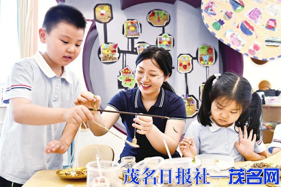 5月30日,在山东省实验幼儿园,老师带着孩子们体验香囊制作。 新华社记者郭绪雷摄