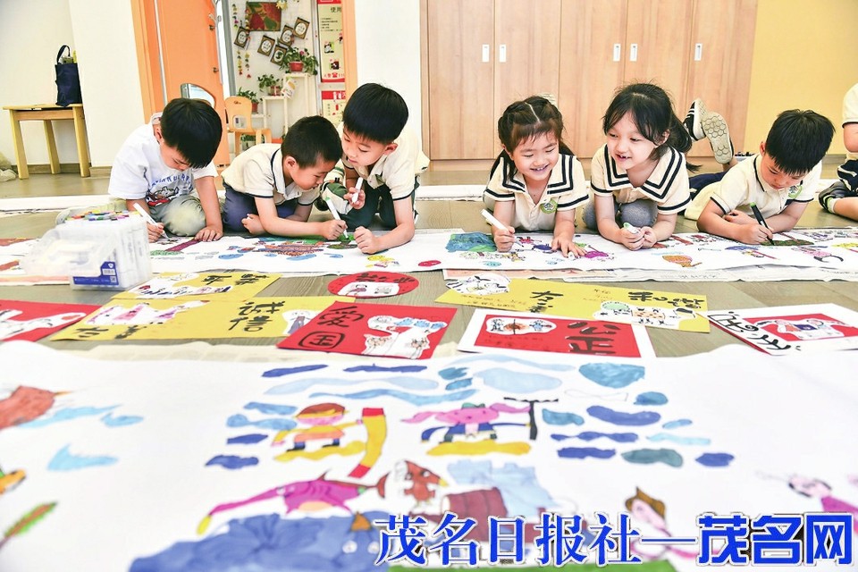 5月30日,在山东省实验幼儿园,孩子们在手绘《西游记》图画。