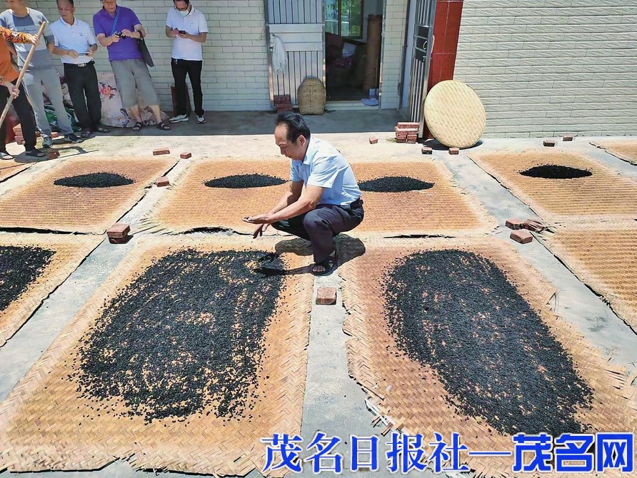 黄贵对笔者说,有的人以为加工淡豆豉很简单,其实不然。如果煮豆、发酵等环节不掌握好,豆豉就会腐烂变质,不仅赚不了钱,还会血本无归。因此,直到现在,他们依然按照传统的方法加工淡豆豉:先是将黑豆用柴火煮熟,晾干后均匀地摊放在专用的大簸箕上,然后放在冬暖夏凉的老房子专用的架上发酵五天,之后洗一次再发酵,还要挑上楼顶放在竹笪上翻晒,整个制作过程十分讲究,而且清洁卫生,消费者可以放心食用。说到这里,黄贵爽朗地笑道:“话虽然这么说,但是操作起来是不容易的,全凭心灵手巧,还要不断地总结经验,吸取教训,灵活处理。因此,本镇有的人尝试过失败的滋味后,不敢再拿钱打水漂了,只好到塘坦村购买淡豆豉,或者实行来料加工。茂名市有个老中医开了一间药店,需要用淡豆豉做‘药引’,每年都来料托我加工。我精心‘代劳’,每斤只收3元加工费。后来,这名老中医觉得塘坦村的淡豆豉‘味道好极了’,还兼营淡豆鼓,取得了较好的经济效益。”