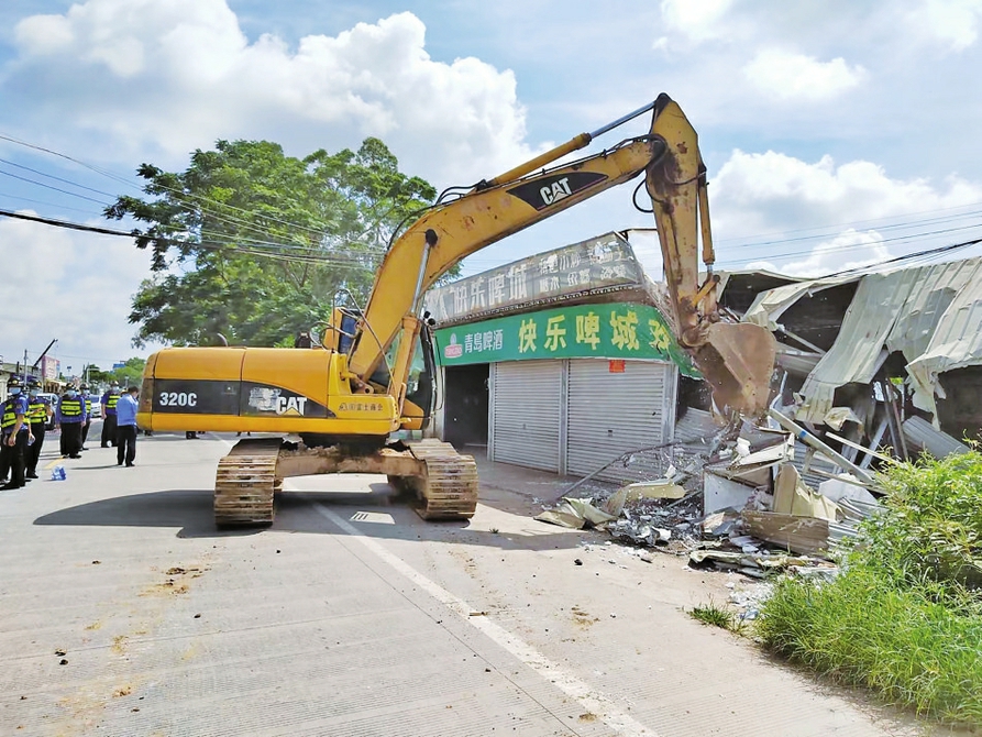 前天上午9时许,清拆行动开始,200人的清拆队伍由鳌头圩方向沿省道S544线一路往市区方向清拆。茂名晚报记者在现场看到,乱搭乱建的铁皮屋、铁棚主要在路的南面。在清拆过程中,各个工作组服从命令听指挥,严格按照相关法律法规,各司其职、相互配合,做到不留空档、不留死角,顺利完成了本次清拆行动。