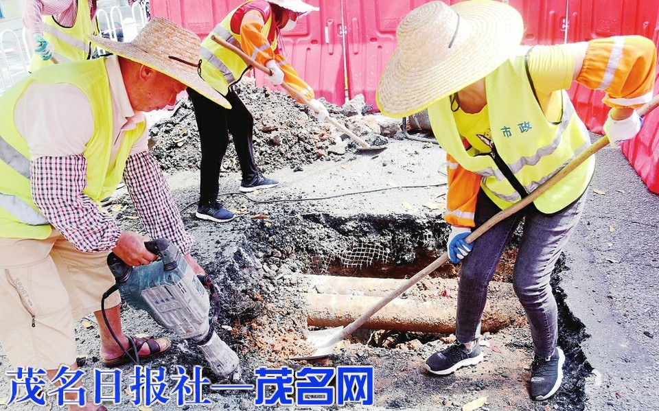 昨日,市区人民南路一处路面塌陷,市政工人接报后立即赶到现场全力抢修。据施工方介绍,地下管网老化渗漏是塌陷主要原因,预计本月10日前修复路面。茂名日报社全媒体记者陈国汉摄
