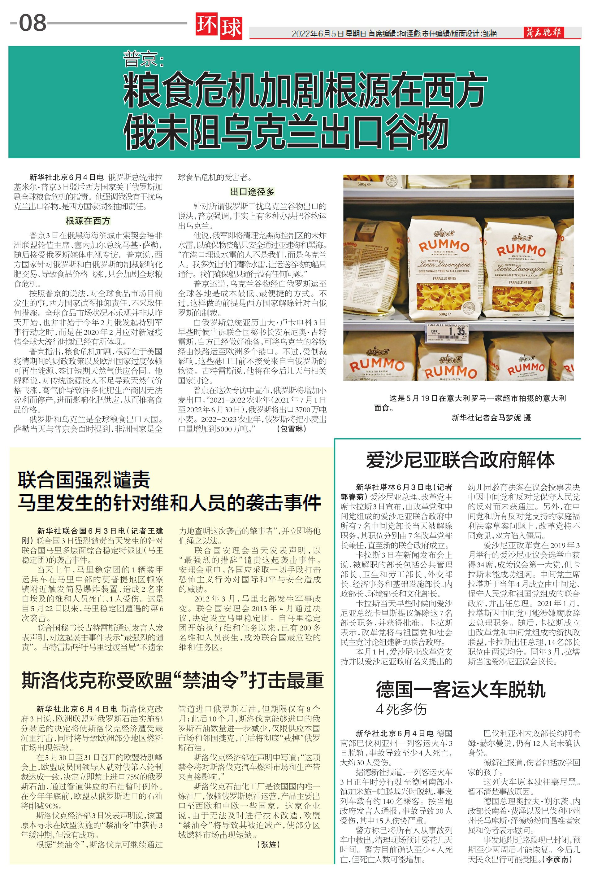 普京:粮食危机加剧根源在西方 俄未阻乌克兰出口谷物