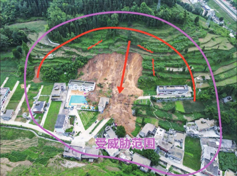 此次滑坡威胁区范围示意图。(图片由贵州省自然资源厅提供)