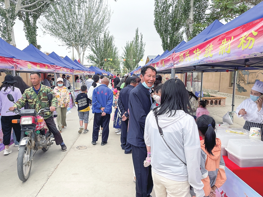 横贯村子南北主干道的“星光市集”上,野菜、土鸡蛋、特色农家小吃等都在大集上一一陈列销售,叶雕、葫芦烙画、泥哇呜、剪纸、黄河泥塑等非遗项目组合成具有浓郁地方特色的文化盛宴,吸引了众多城里人下乡“赶集”。