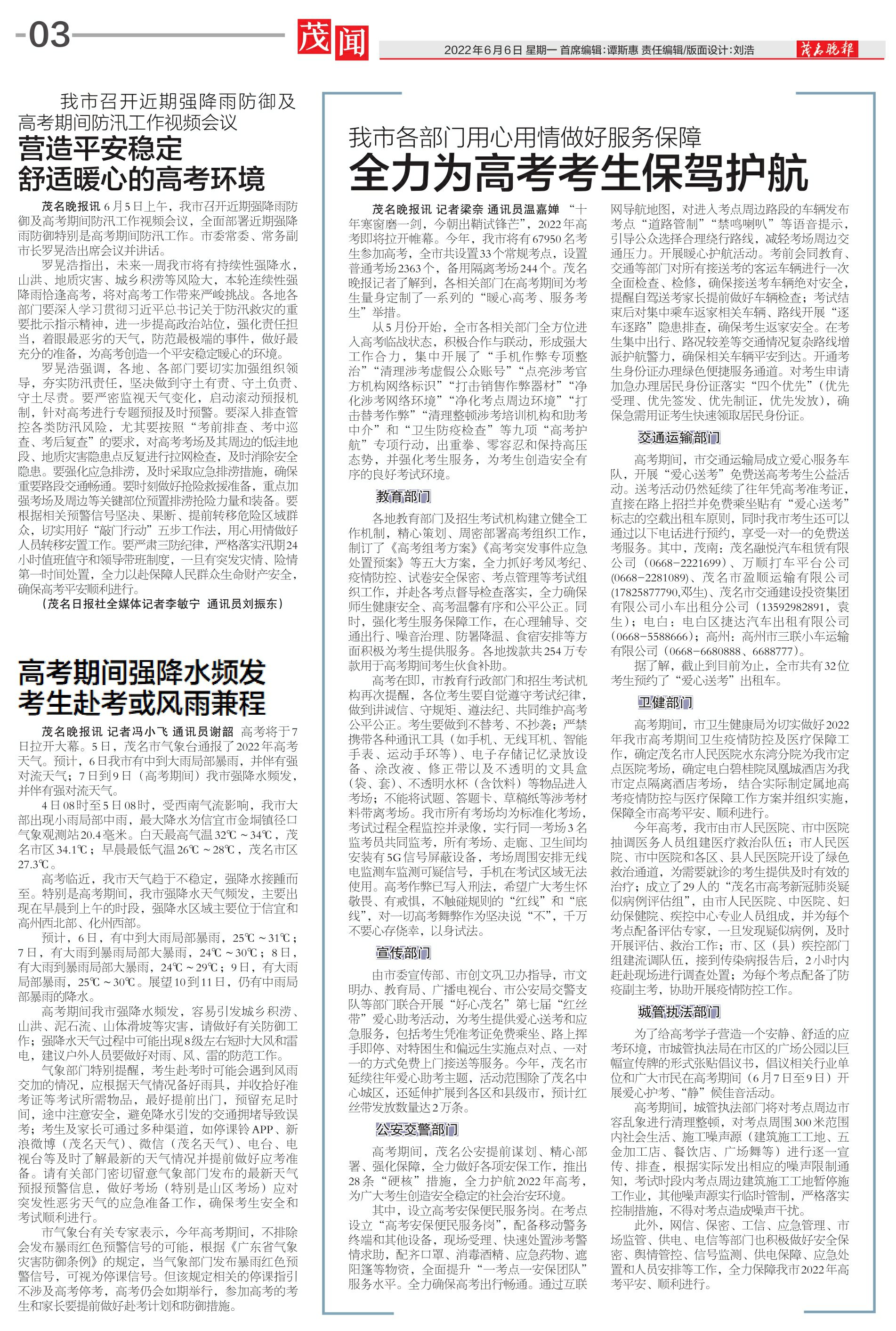 全力为高考考生保驾护航