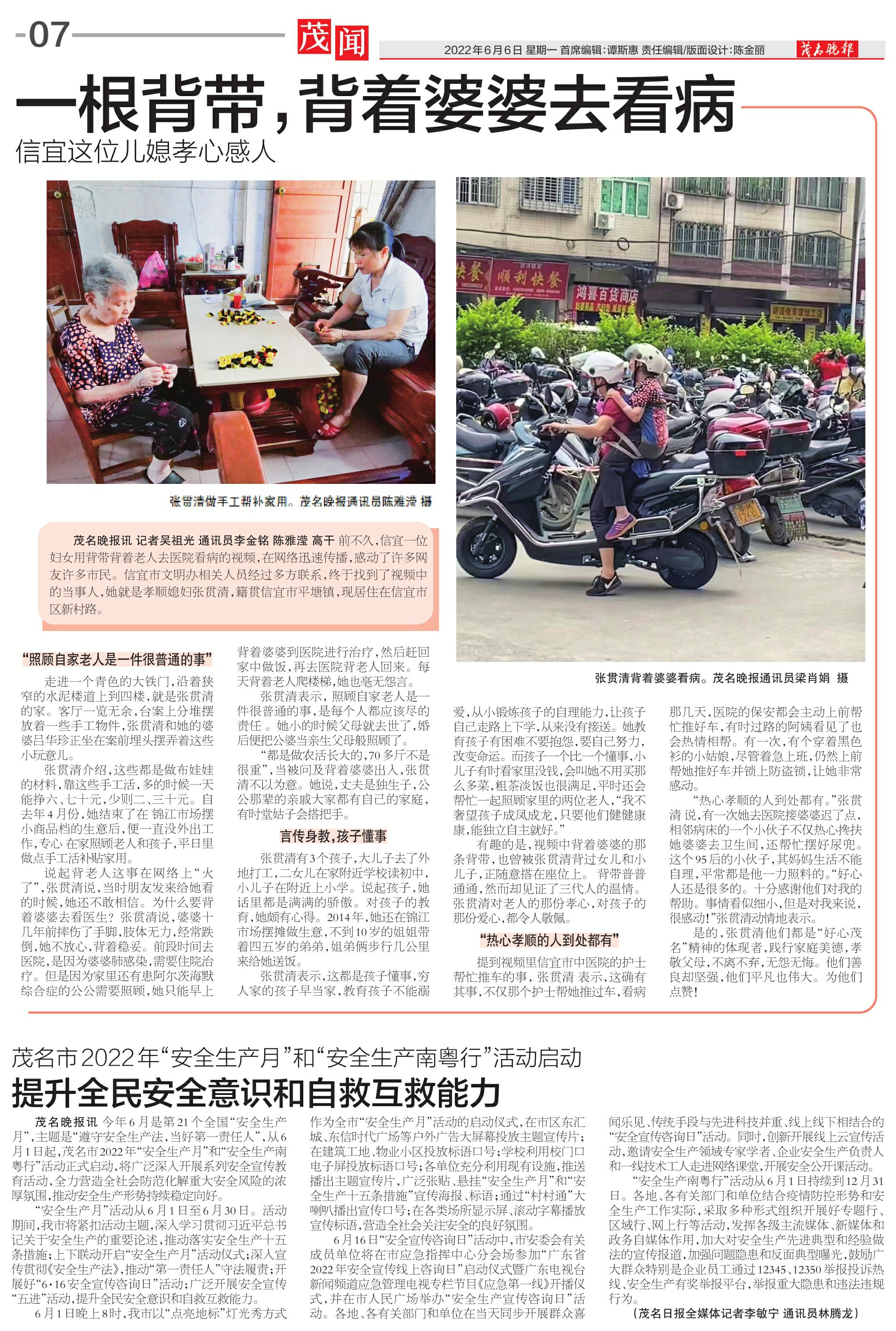 一根背带,背着婆婆去看病