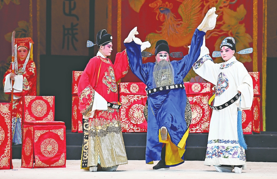 “第九届中国秦腔艺术节”开幕式上演出的秦腔经典剧目《三滴血》(6月13日摄)。 新华社记者刘潇摄