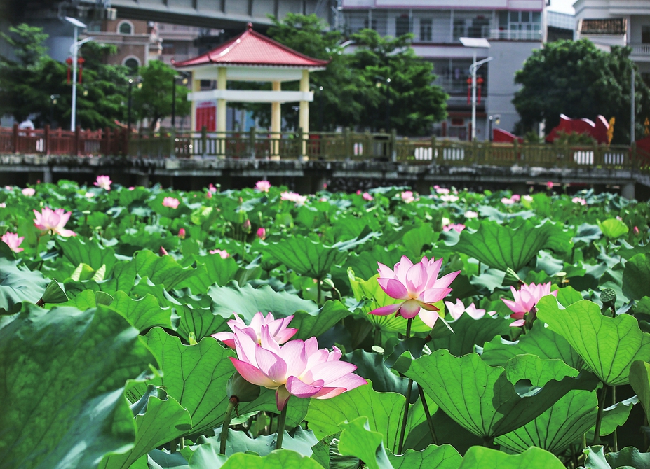 合水城市生态湿地公园内荷花盛放,美景醉人。
