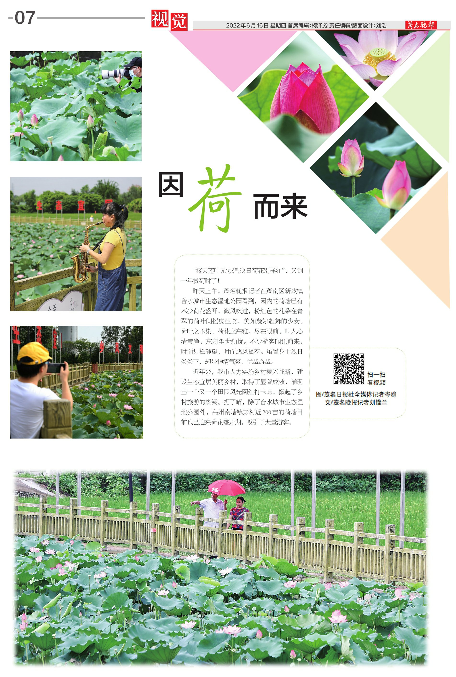 近年来,我市大力实施乡村振兴战略,建设生态宜居美丽乡村,取得了显著成效,涌现出一个又一个田园风光网红打卡点,掀起了乡村旅游的热潮。据了解,除了合水城市生态湿地公园外,高州南塘镇彭村近200亩的荷塘目前也已迎来荷花盛开期,吸引了大量游客。
