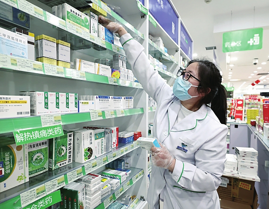 新华社北京6月16日电4月10日,上海国大药房南京西路店员工梁婷婷在店内为顾客挑选药品。(新华社记者陈建力摄)