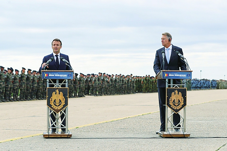6 月 15日,正在罗马尼亚访问的法国总统马克龙(左)在黑海沿岸的康斯坦察空军基地发表讲话。新华社发(克里 斯 泰 尔摄)