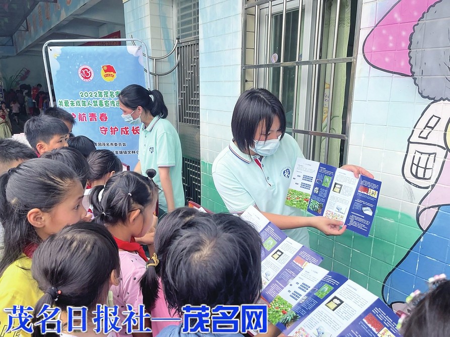 学生们在禁毒志愿者的引导下,了解毒品危害。茂名晚报记者张丁文摄